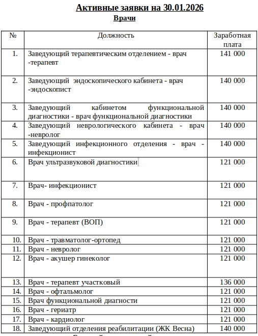 В наш дружный, медицинский коллектив требуются следующие специалисты: на 29.01.2026 г.